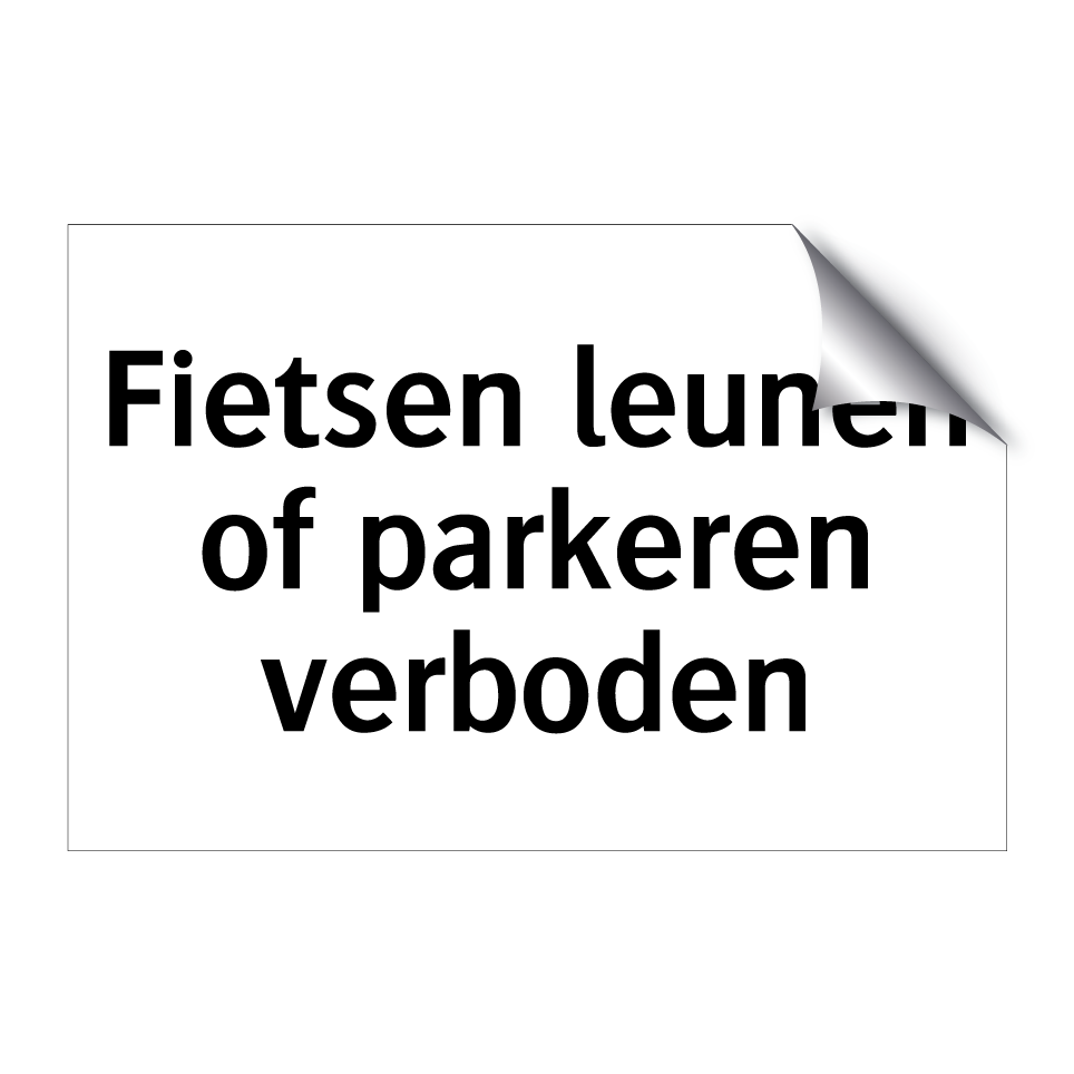 Verbodsbord met de tekst Fietsen leunen of parkeren verboden