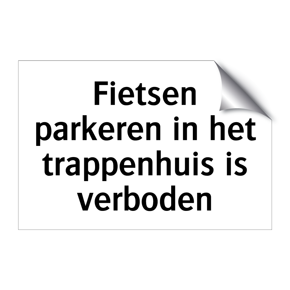 Verbodsbord met de tekst Fietsen parkeren in het trappenhuis is verboden