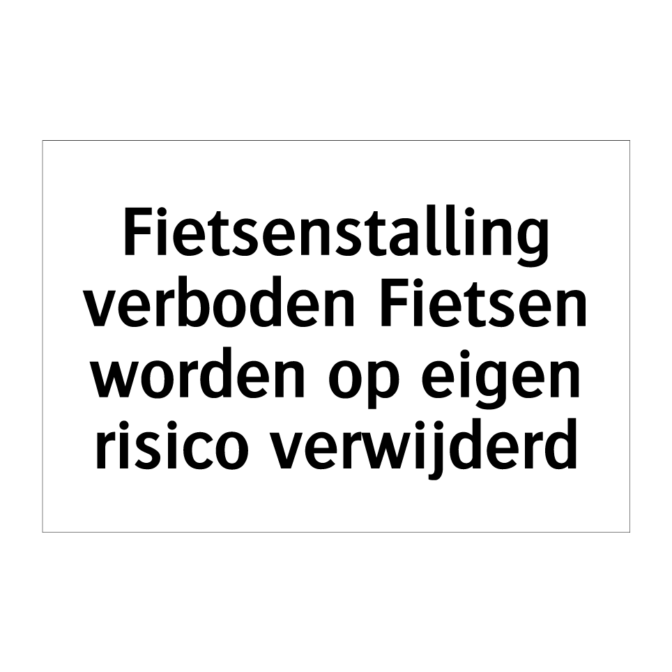 Verbodsbord met de tekst Fietsenstalling verboden Fietsen worden op eigen risico verwijderd