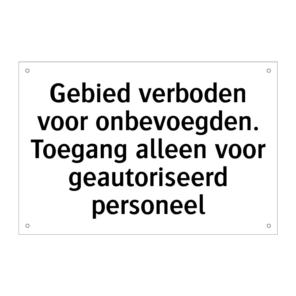 Verbodsbord met de tekst Gebied verboden voor onbevoegden. Toegang alleen voor geautoriseerd personeel