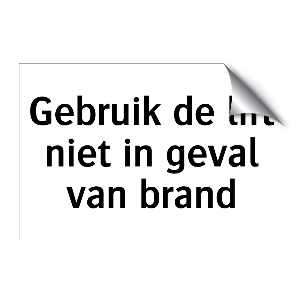 Verbodsbord met de tekst Gebruik de lift niet in geval van brand
