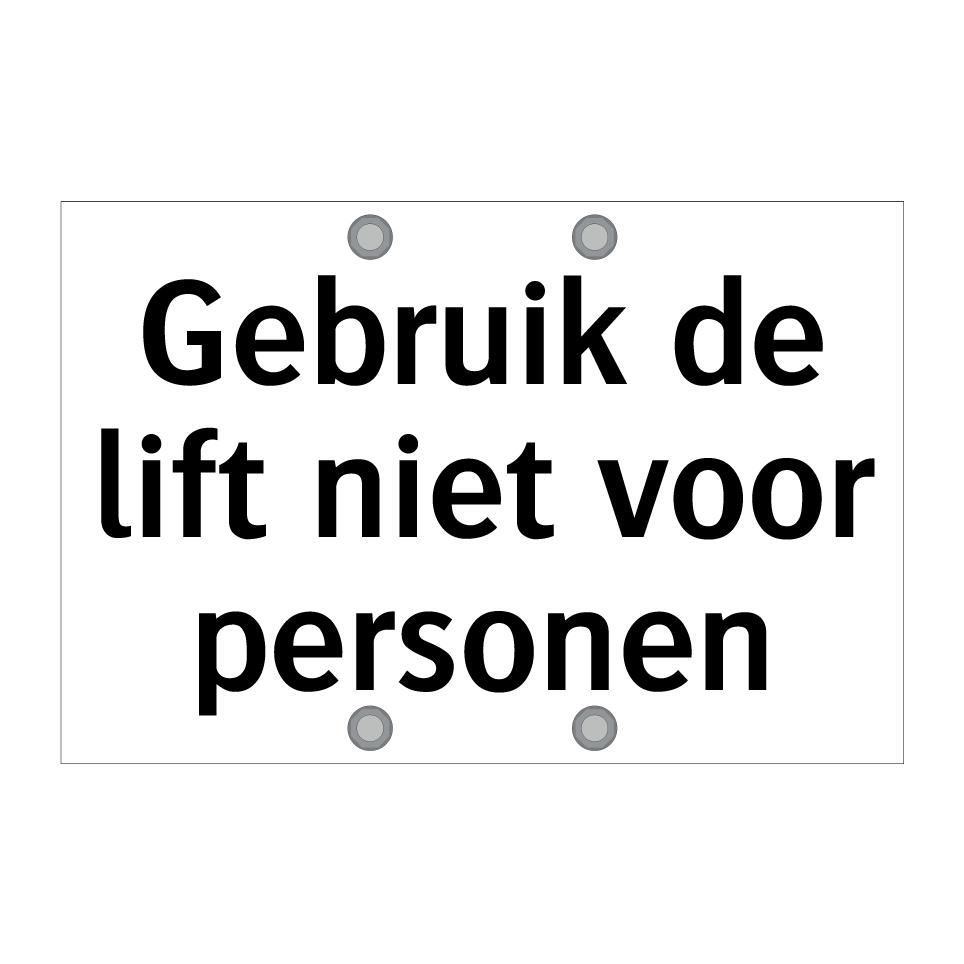 Verbodsbord met de tekst Gebruik de lift niet voor personen