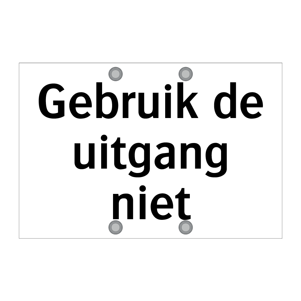 Verbodsbord met de tekst Gebruik de uitgang niet