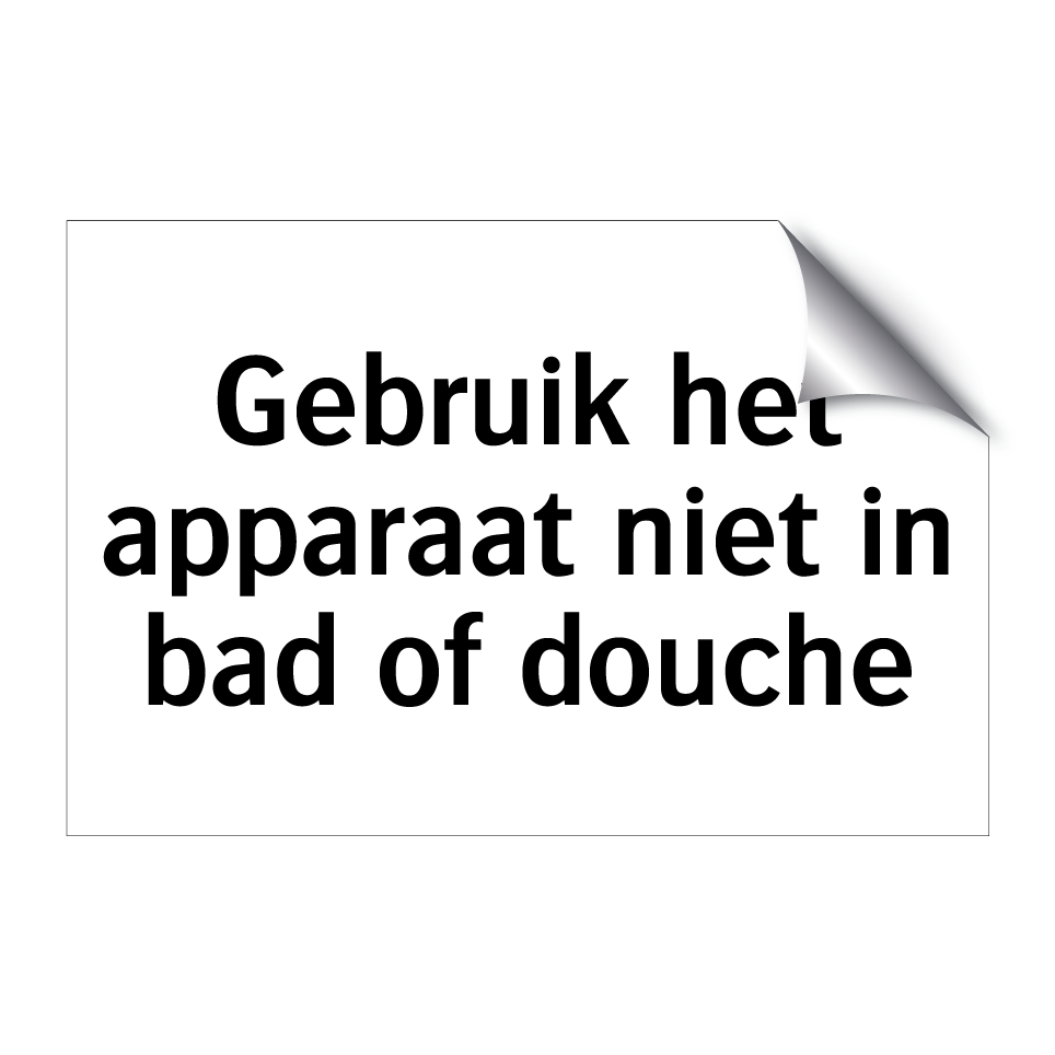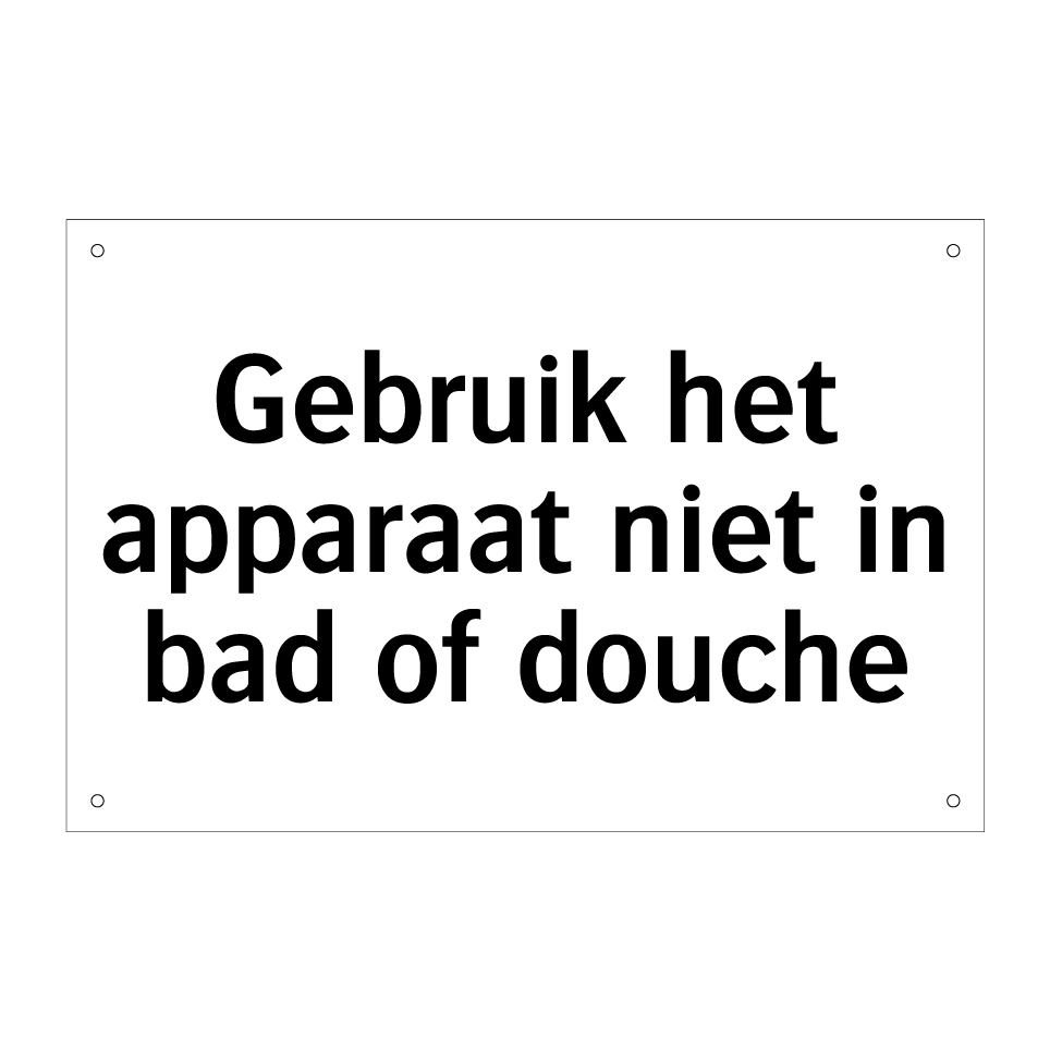 Verbodsbord met de tekst Gebruik het apparaat niet in bad of douche
