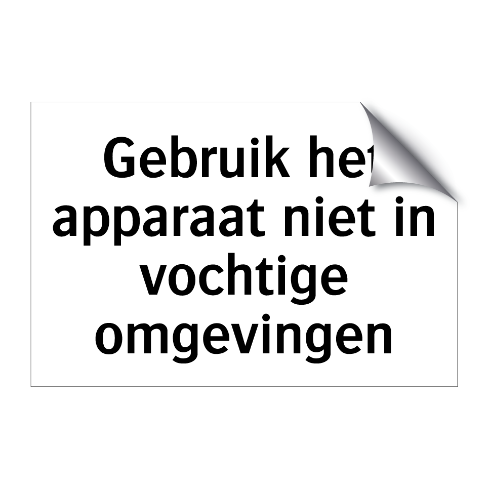Verbodsbord met de tekst Gebruik het apparaat niet in vochtige omgevingen