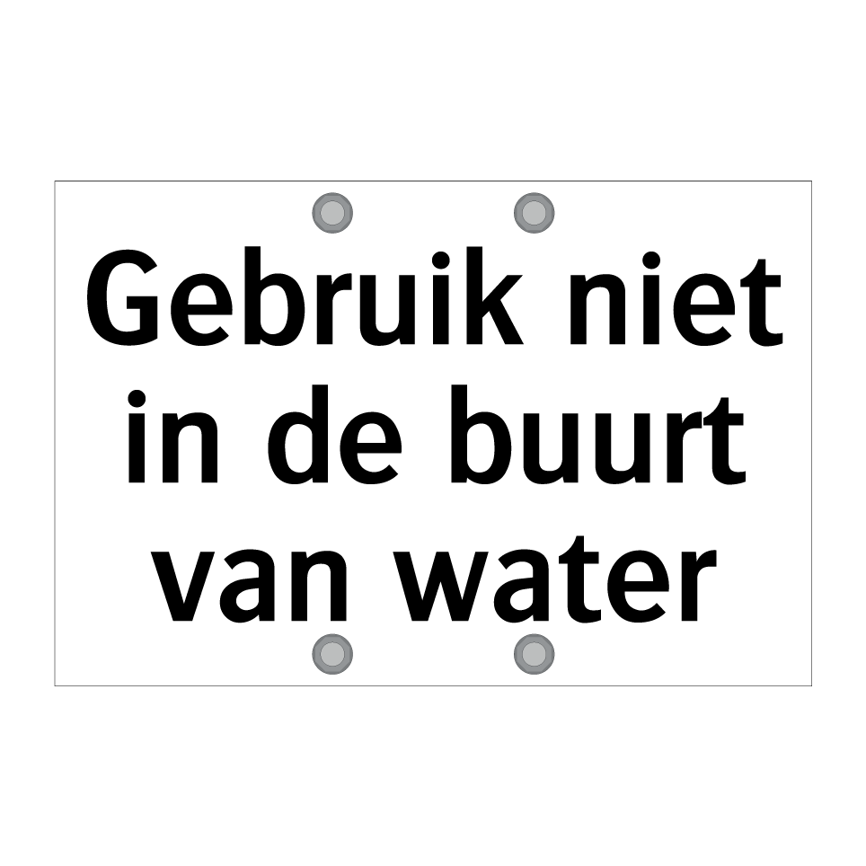 Verbodsbord met de tekst Gebruik niet in de buurt van water