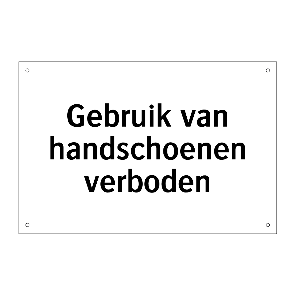 Verbodsbord met de tekst Gebruik van handschoenen verboden