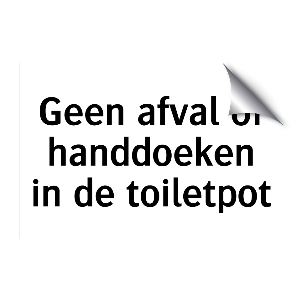 Verbodsbord met de tekst Geen afval of handdoeken in de toiletpot