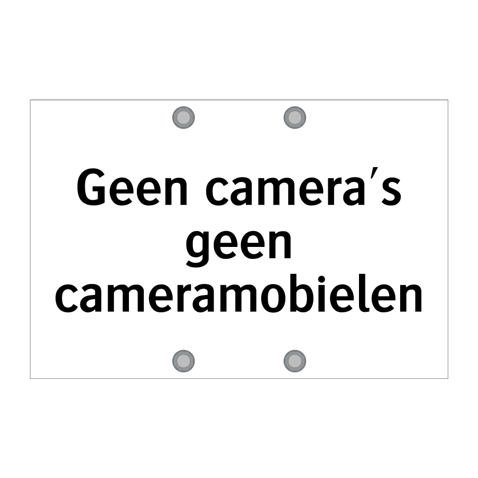 Verbodsbord met de tekst Geen camera's geen cameramobielen