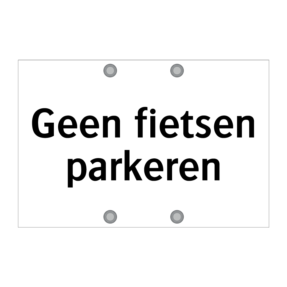 Deze opvallende verbodsbord is ideaal voor het duidelijk aangeven van parkeerrestricties voor fietsen. Plaats deze bord op strategische locaties zoals ingangen van gebouwen, winkelcentra, of smalle doorgangen waar fietsen niet gewenst zijn. Het helpt om ongewenste fietsparkeerproblemen te voorkomen en zorgt voor een georganiseerde en veilige omgeving. Door de duidelijke zwarte tekst op een witte achtergrond is de boodschap gemakkelijk te lezen en te begrijpen. Deze bord is een essentiële toevoeging voor elke plek waar het belangrijk is om de toegang vrij te houden van geparkeerde fietsen.