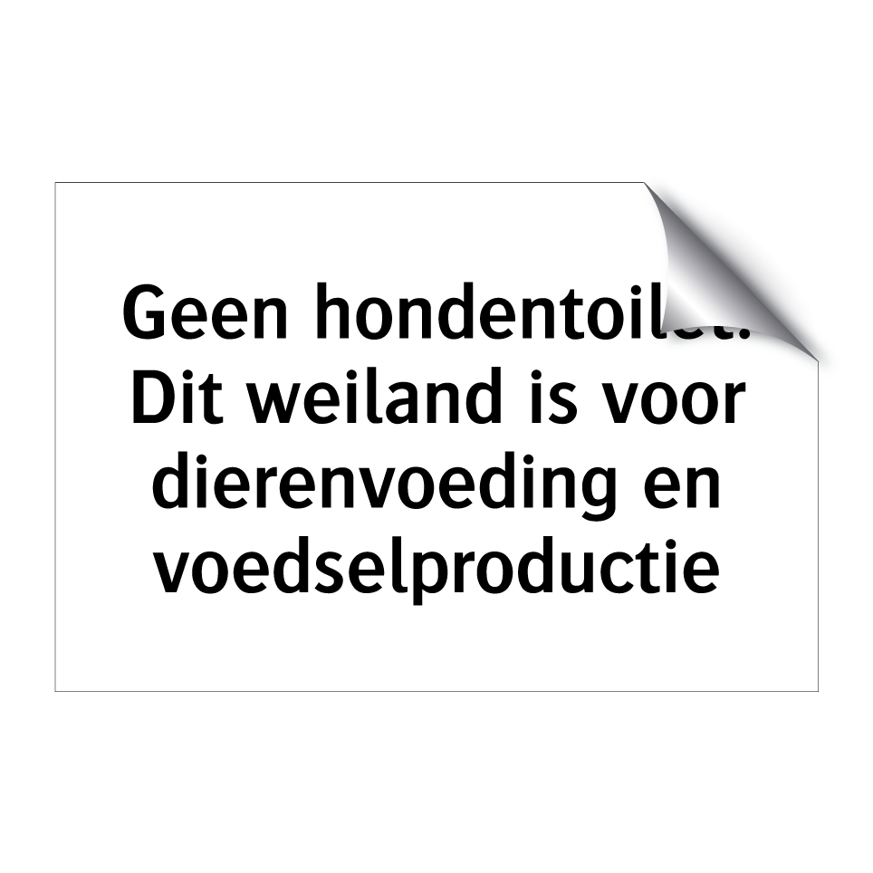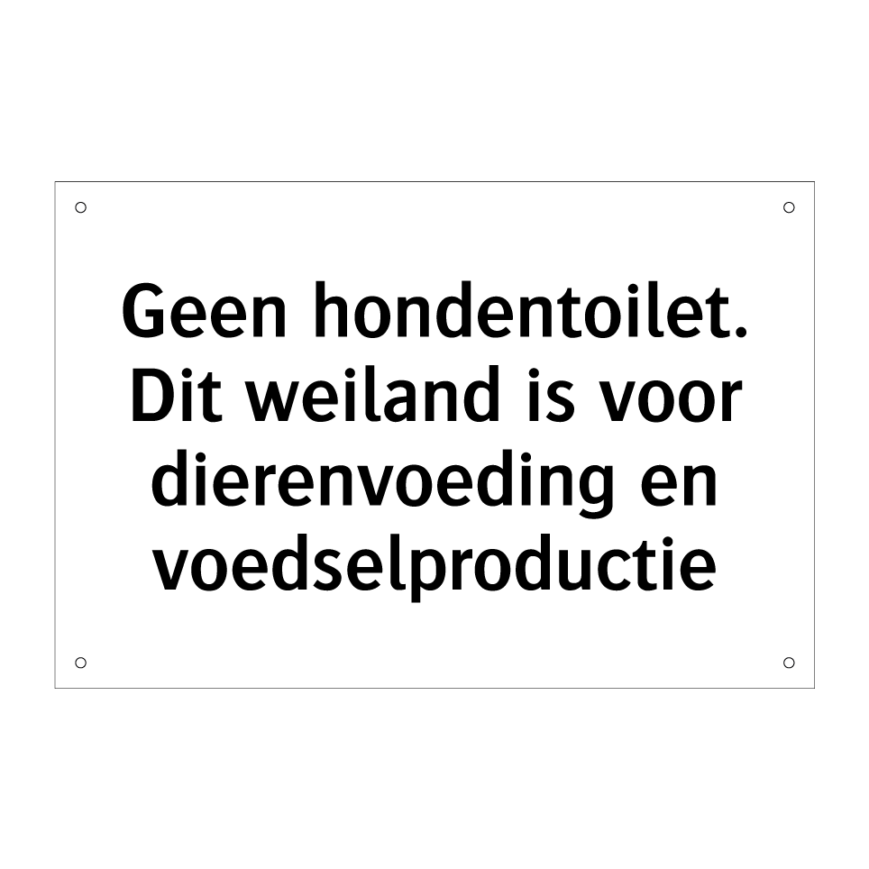 Verbodsbord met de tekst Geen hondentoilet. Dit weiland is voor dierenvoeding en voedselproductie