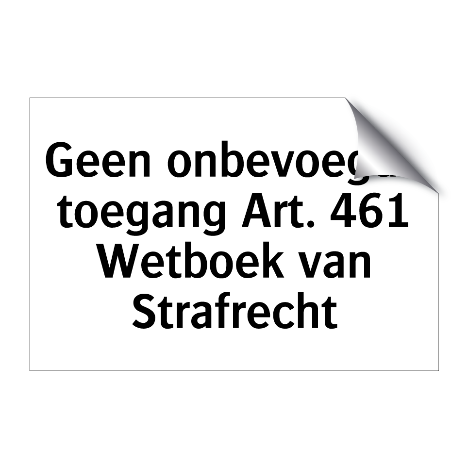 Verbodsbord met de tekst Geen onbevoegde toegang Art. 461 Wetboek van Strafrecht