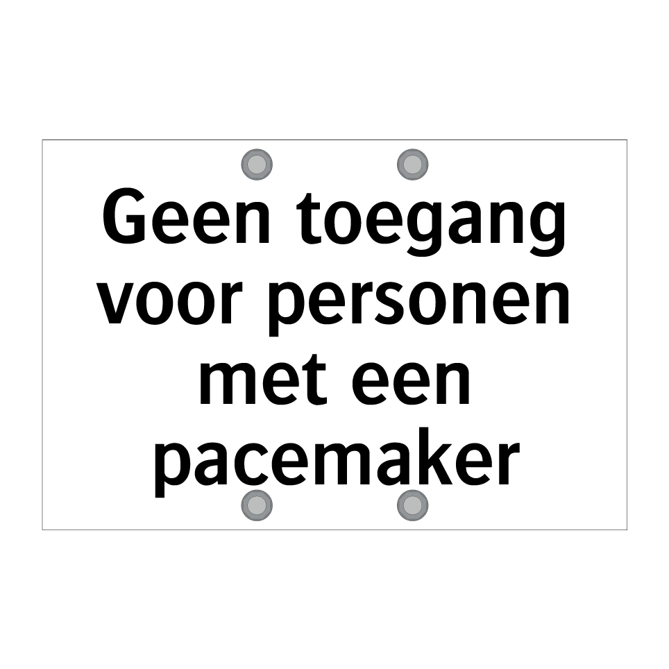 Verbodsbord met de tekst Geen toegang voor personen met een pacemaker