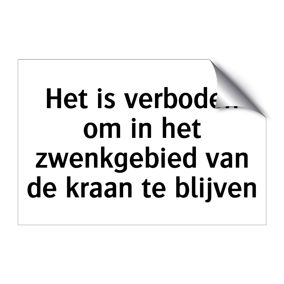 Verbodsbord met de tekst Het is verboden om in het zwenkgebied van de kraan te blijven