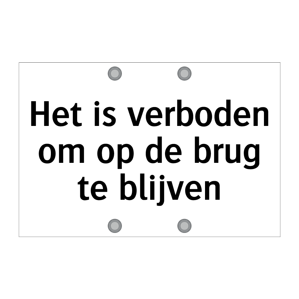 Verbodsbord met de tekst Het is verboden om op de brug te blijven