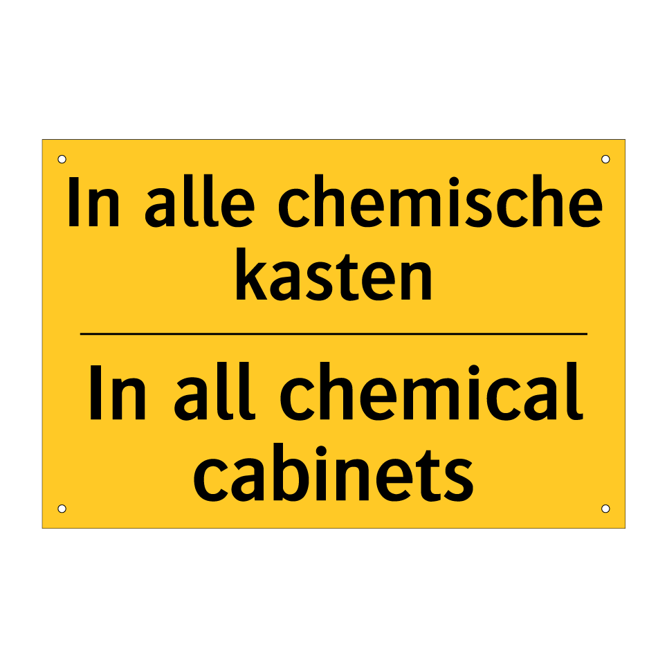 Waarschuwingsbord met de tekst In alle chemische kasten / In all chemical cabinets