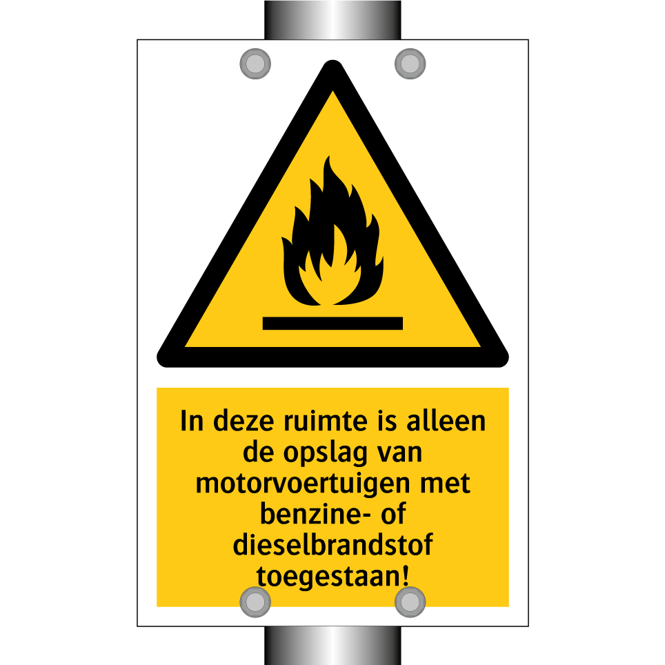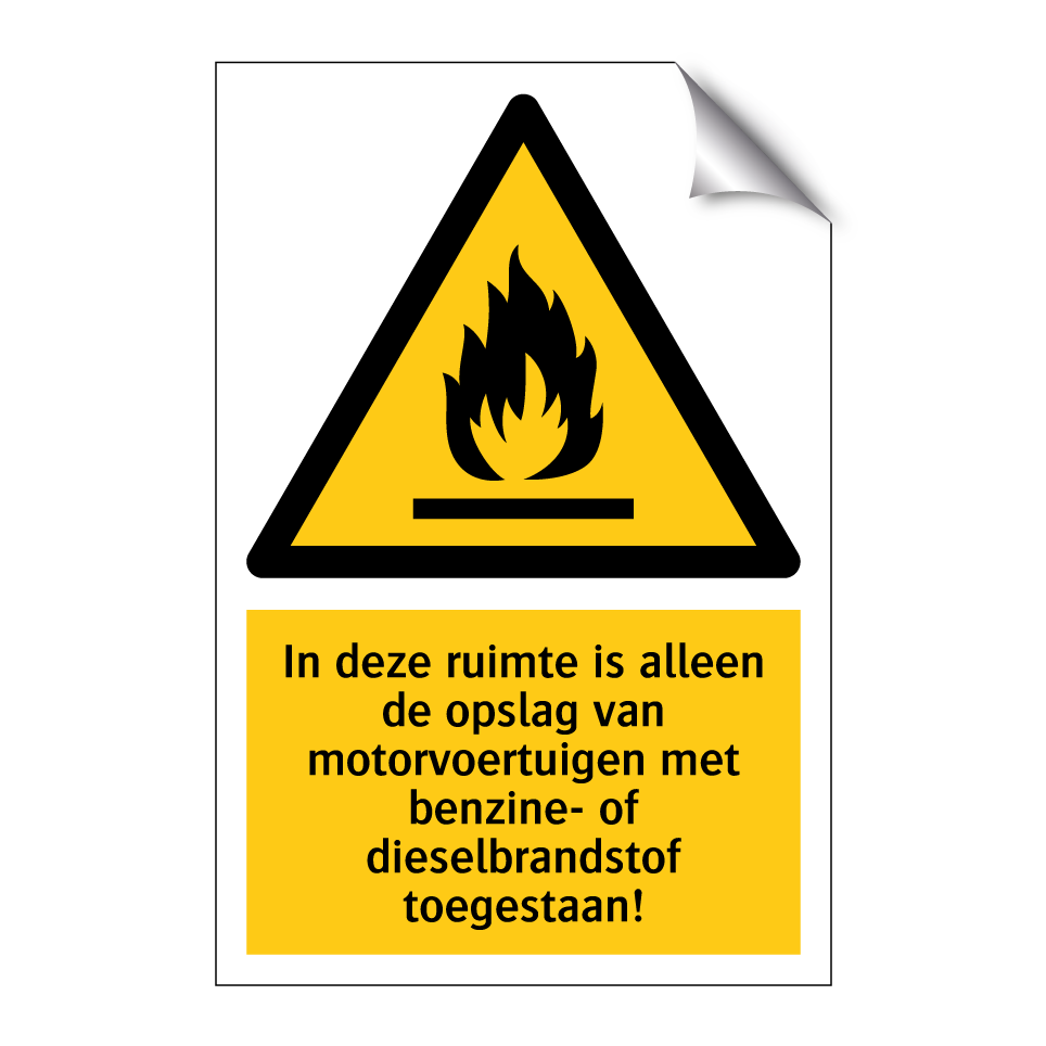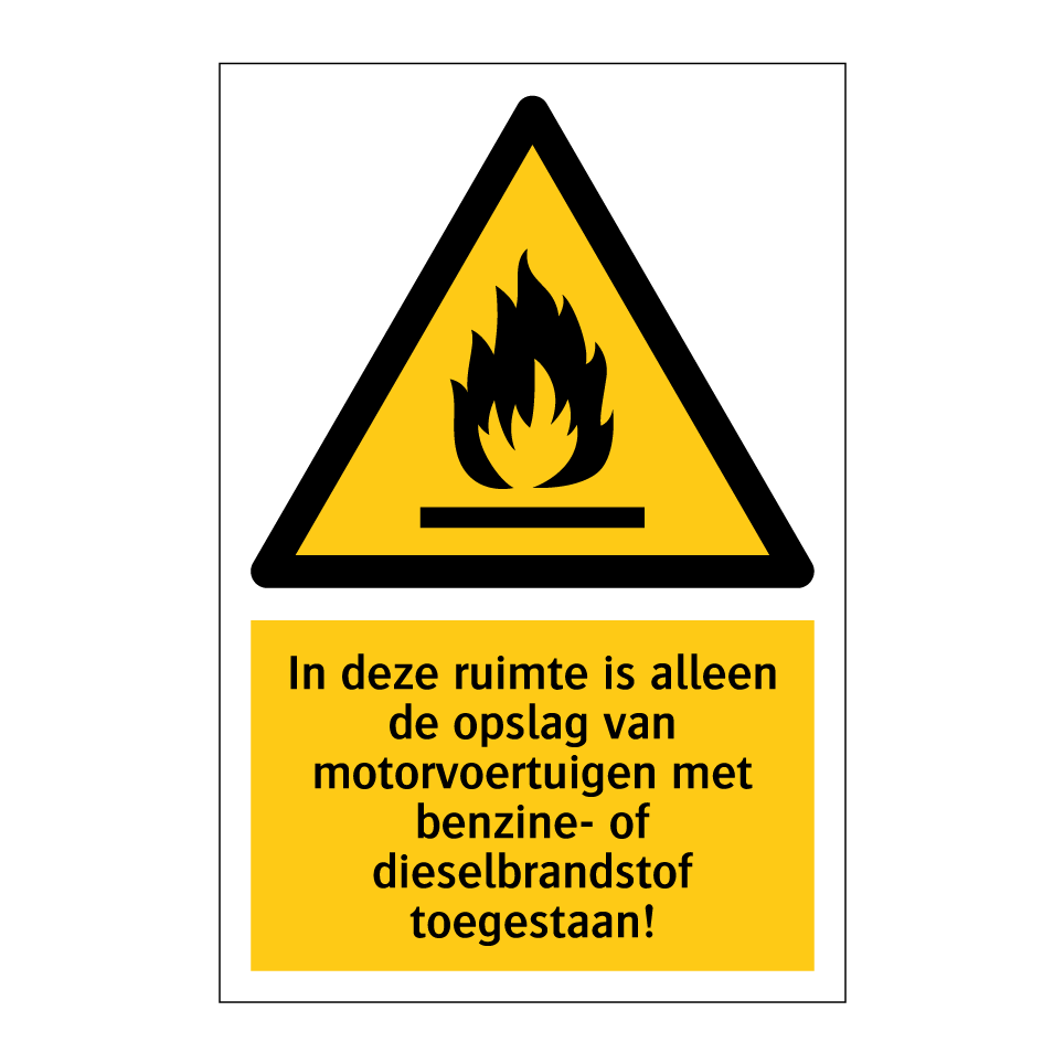 In deze ruimte is alleen de opslag van motorvoertuigen met benzine- of dieselbrandstof toegestaan!
