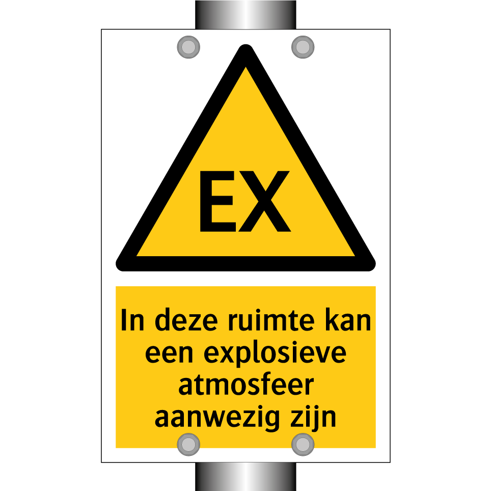 Waarschuwingsbord met de tekst In deze ruimte kan een explosieve atmosfeer aanwezig zijn