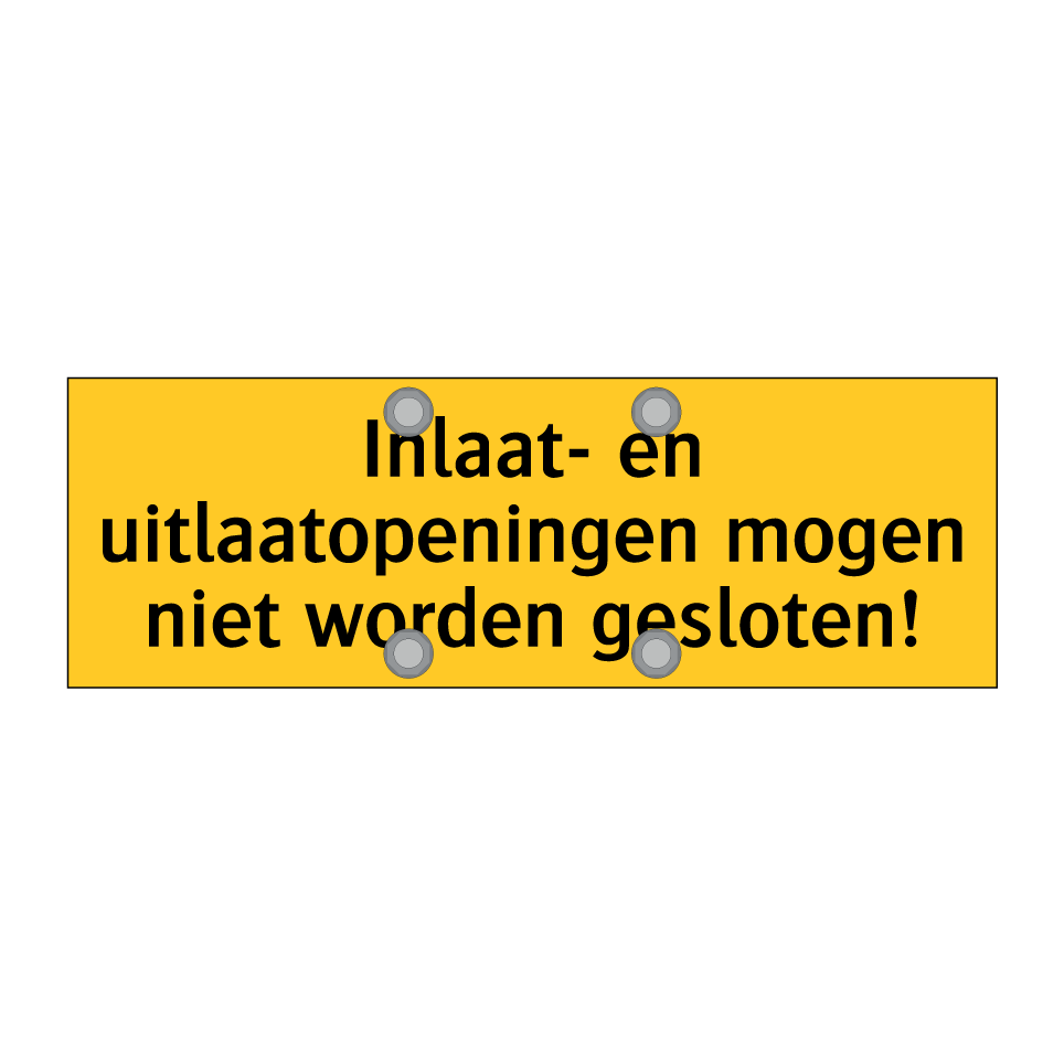 Waarschuwingsbord met de tekst Inlaat- en uitlaatopeningen mogen niet worden gesloten!