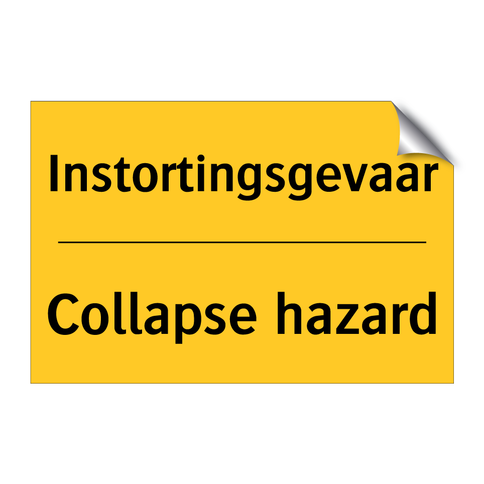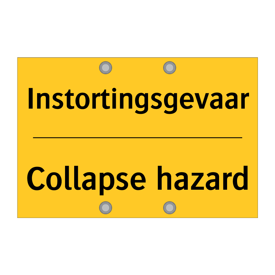 Waarschuwingsbord met de tekst Instortingsgevaar / Collapse hazard