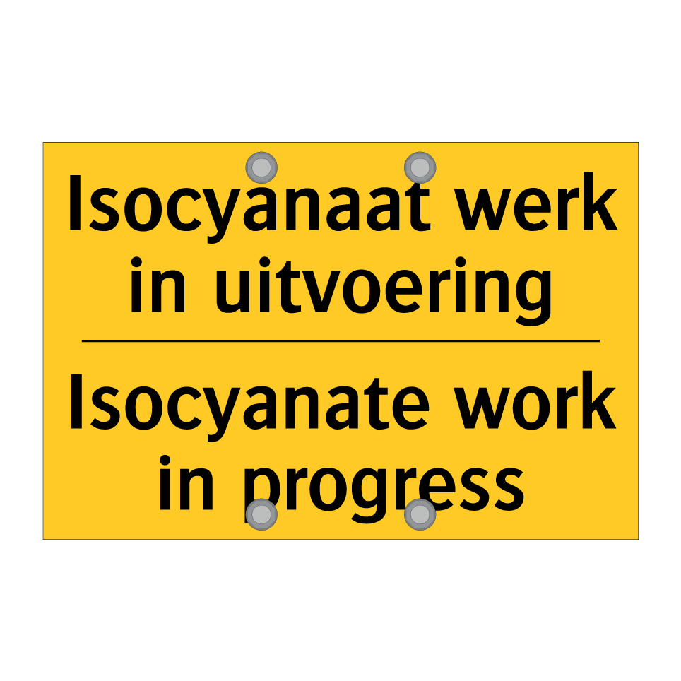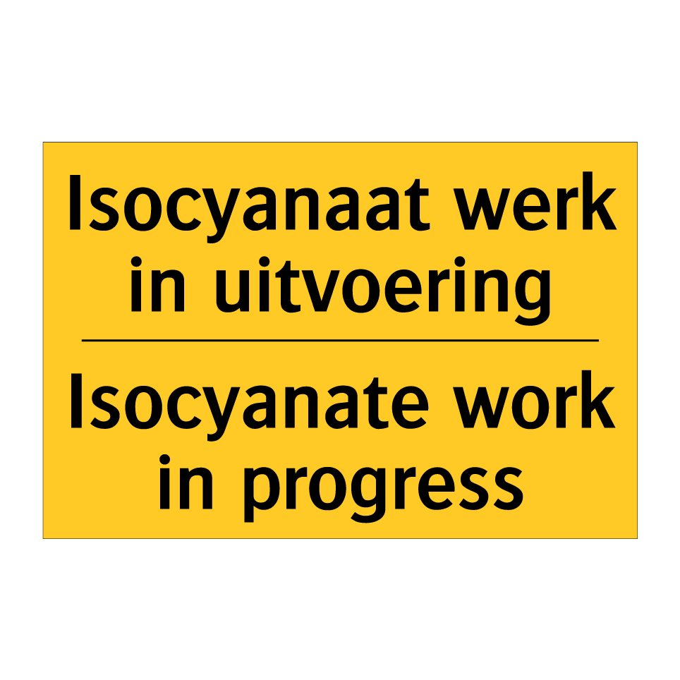 Waarschuwingsbord met de tekst Isocyanaat werk in uitvoering / Isocyanate work in progress