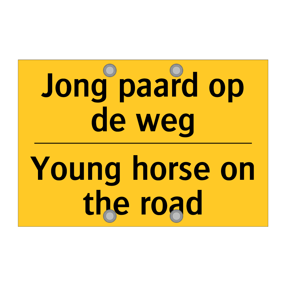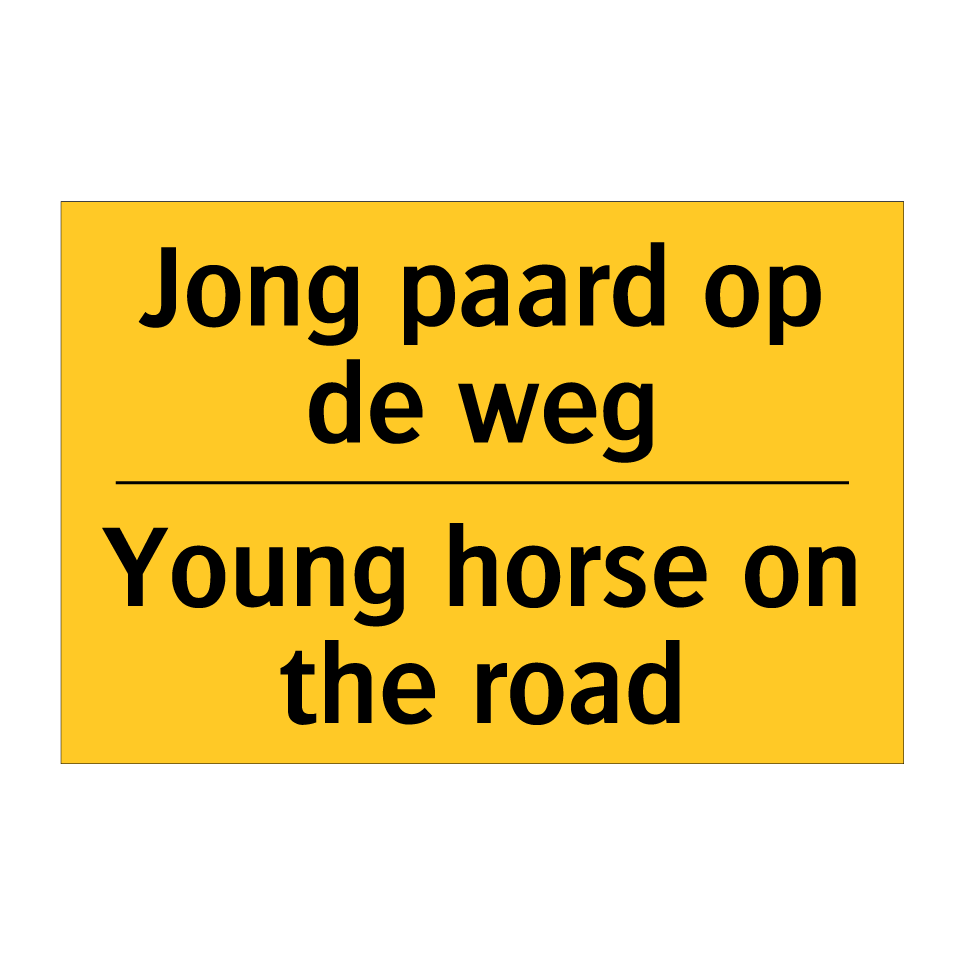 Waarschuwingsbord met de tekst Jong paard op de weg / Young horse on the road