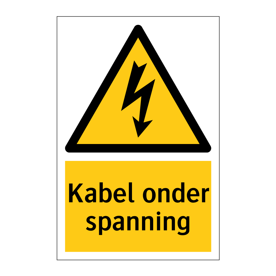 Waarschuwingsbord met de tekst Kabel onder spanning