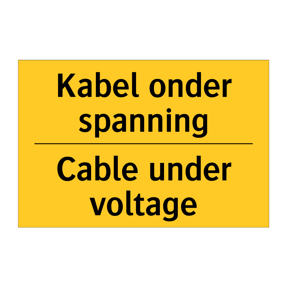 Waarschuwingsbord met de tekst Kabel onder spanning / Cable under voltage