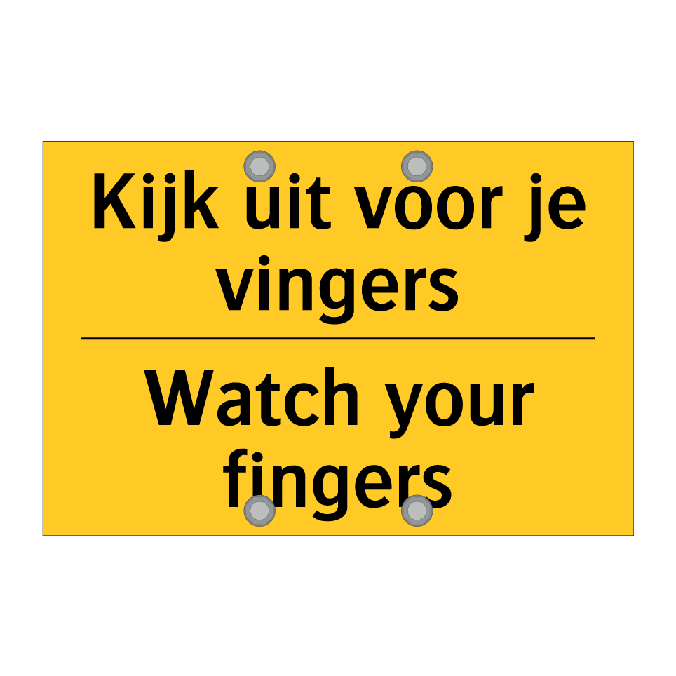 Waarschuwingsbord met de tekst Kijk uit voor je vingers / Watch your fingers