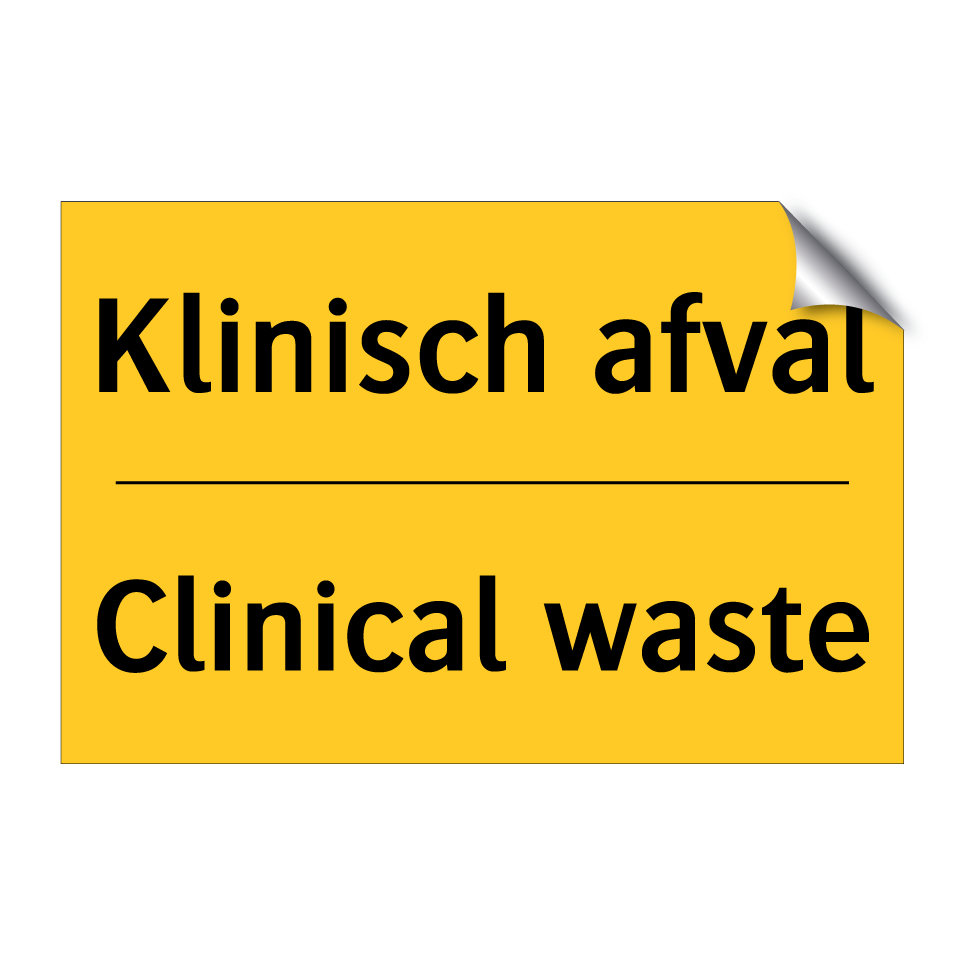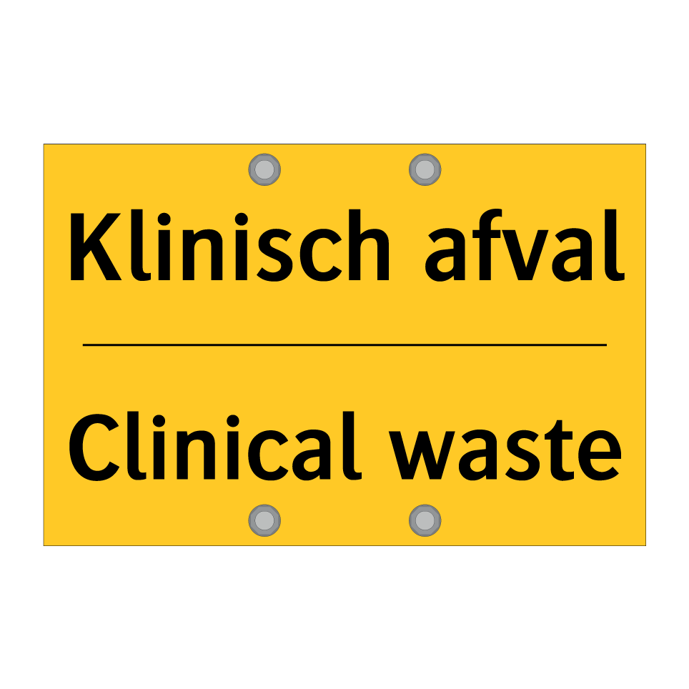 Waarschuwingsbord met de tekst Klinisch afval / Clinical waste