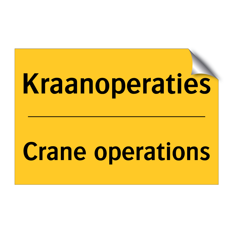 Waarschuwingsbord met de tekst Kraanoperaties / Crane operations