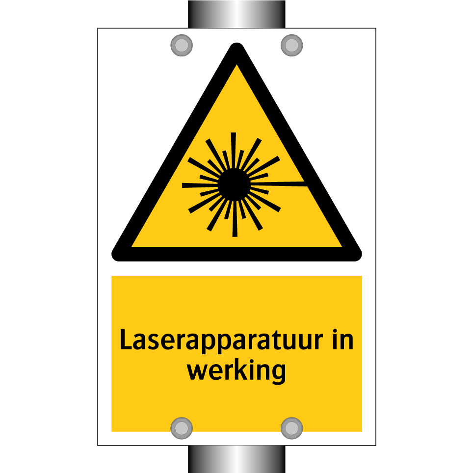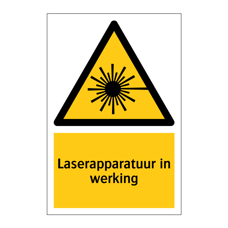 Waarschuwingsbord met de tekst Laserapparatuur in werking