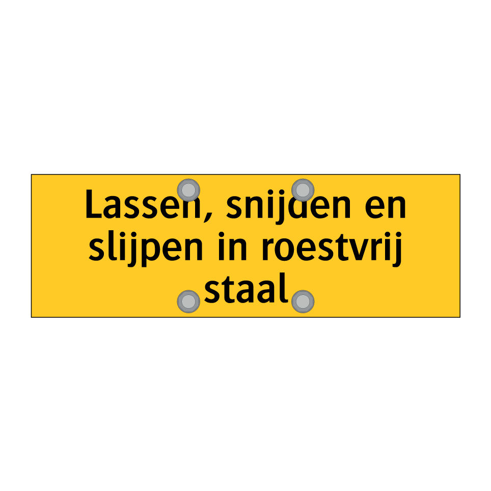Waarschuwingsbord met de tekst Lassen, snijden en slijpen in roestvrij staal