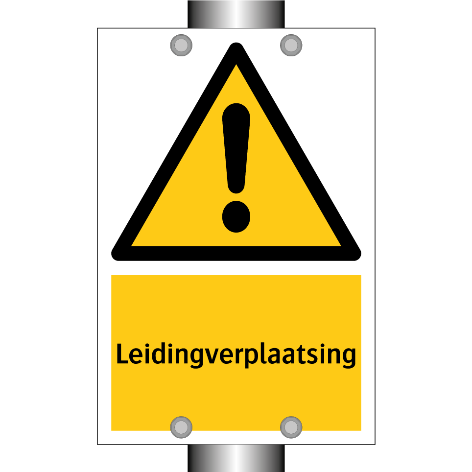 Waarschuwingsbord met de tekst Leidingverplaatsing