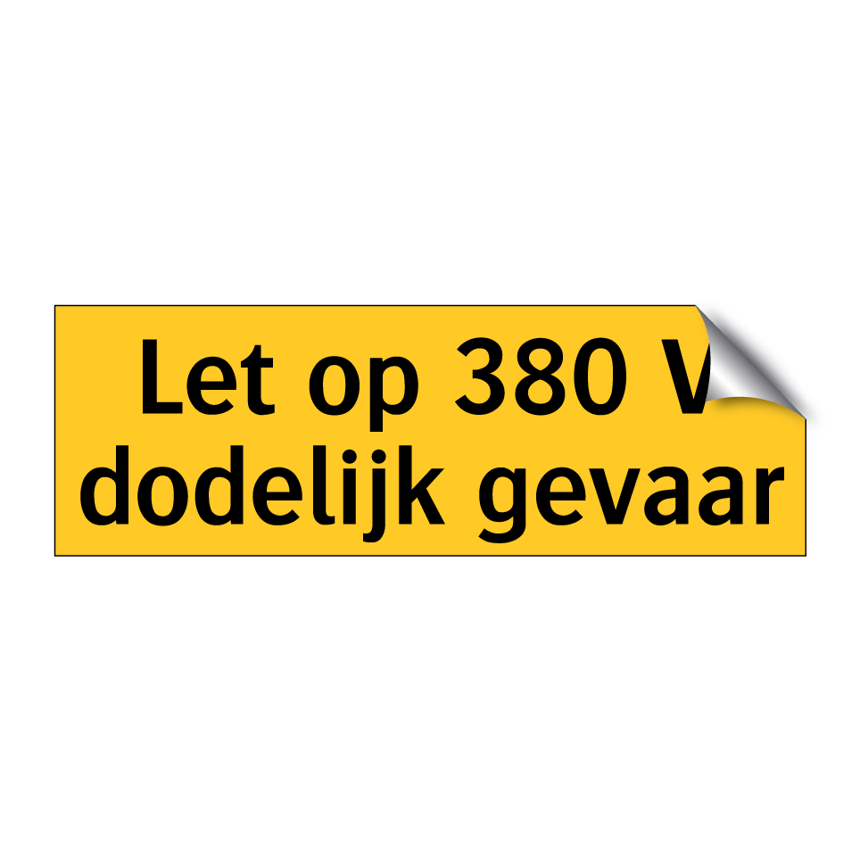 Waarschuwingsbord met de tekst Let op 380 V dodelijk gevaar