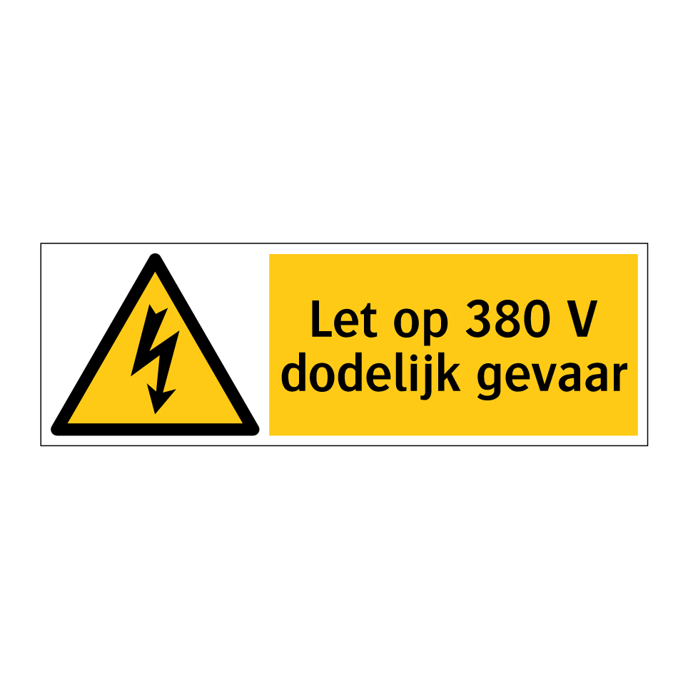 Waarschuwingsbord met de tekst Let op 380 V dodelijk gevaar