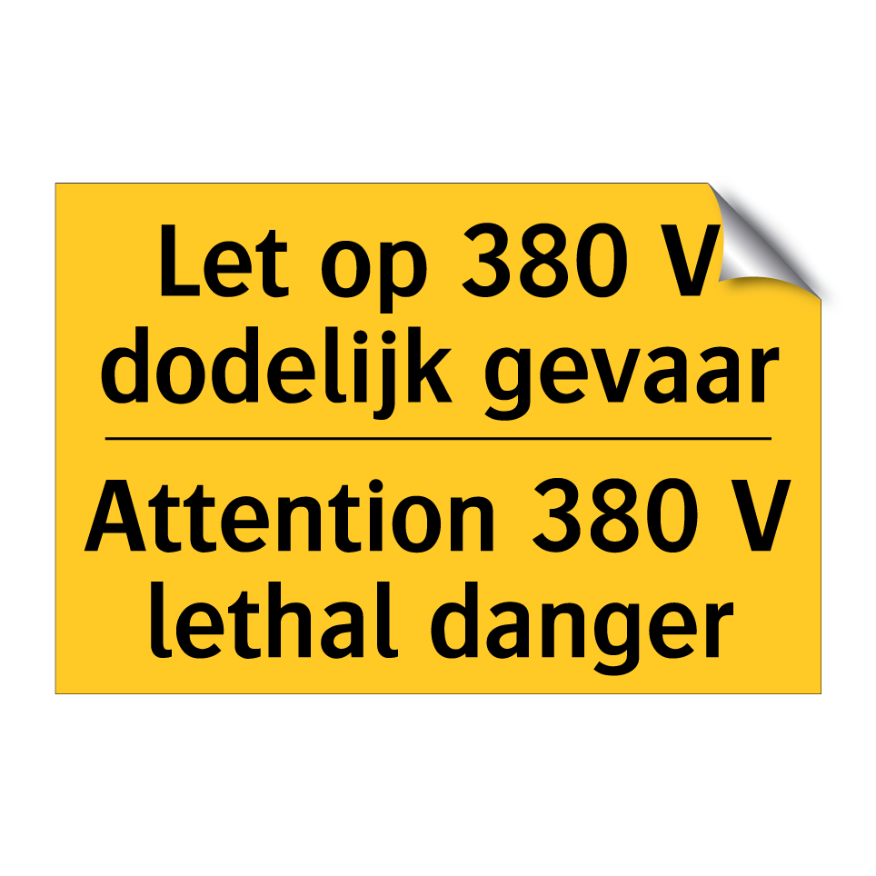 Waarschuwingsbord met de tekst Let op 380 V dodelijk gevaar / Attention 380 V lethal danger