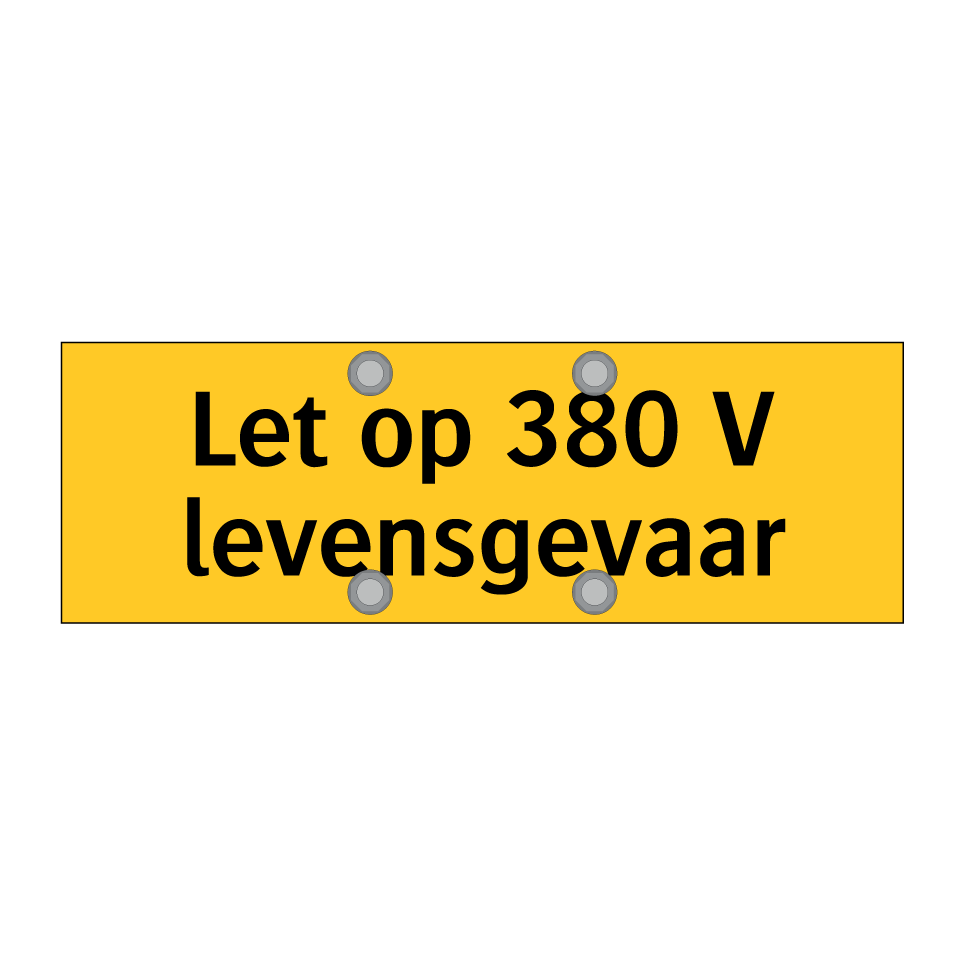 Waarschuwingsbord met de tekst Let op 380 V levensgevaar