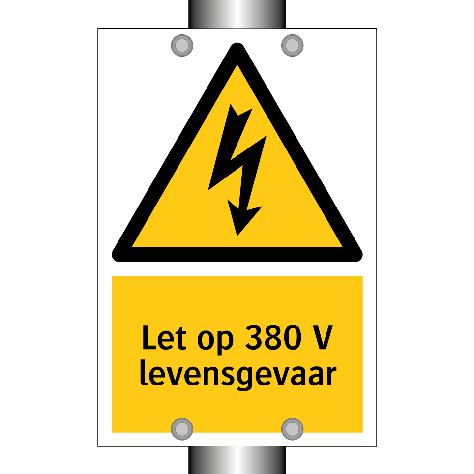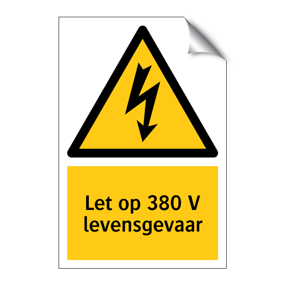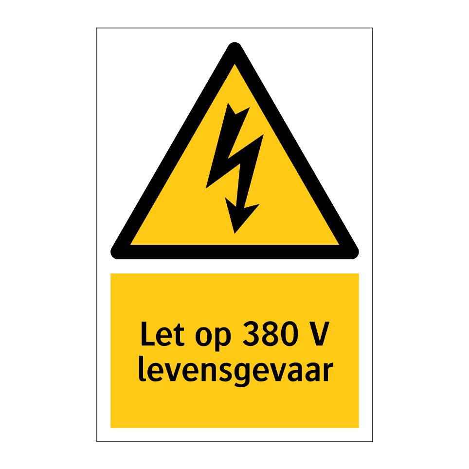 Waarschuwingsbord met de tekst Let op 380 V levensgevaar