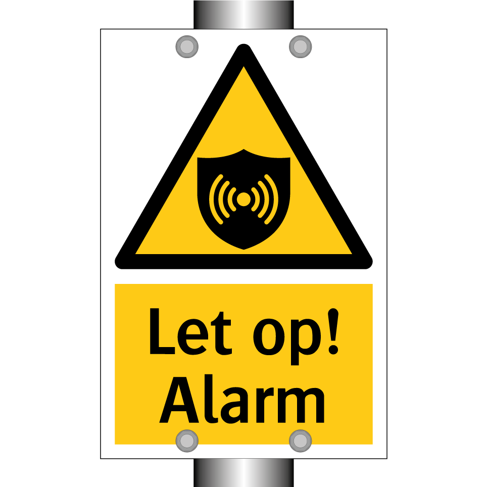 Waarschuwingsbord met de tekst Let op! Alarm