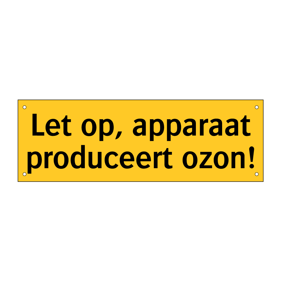 Waarschuwingsbord met de tekst Let op, apparaat produceert ozon!