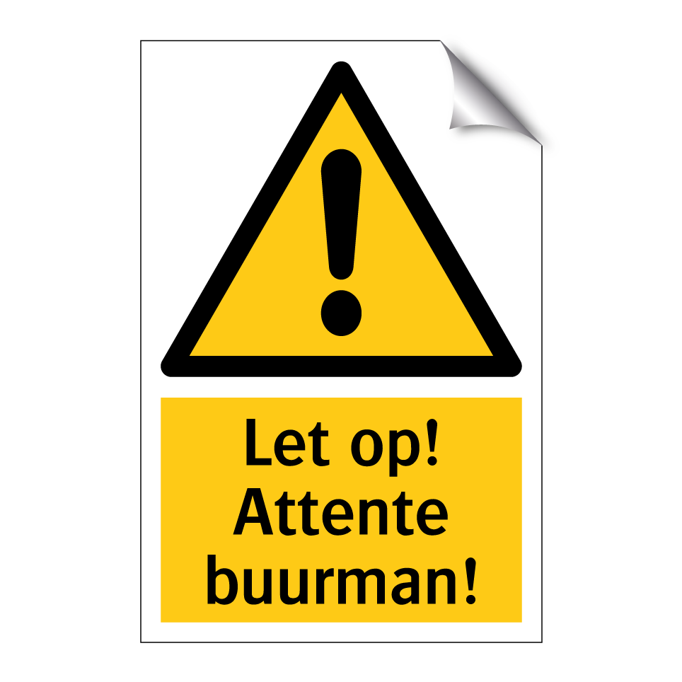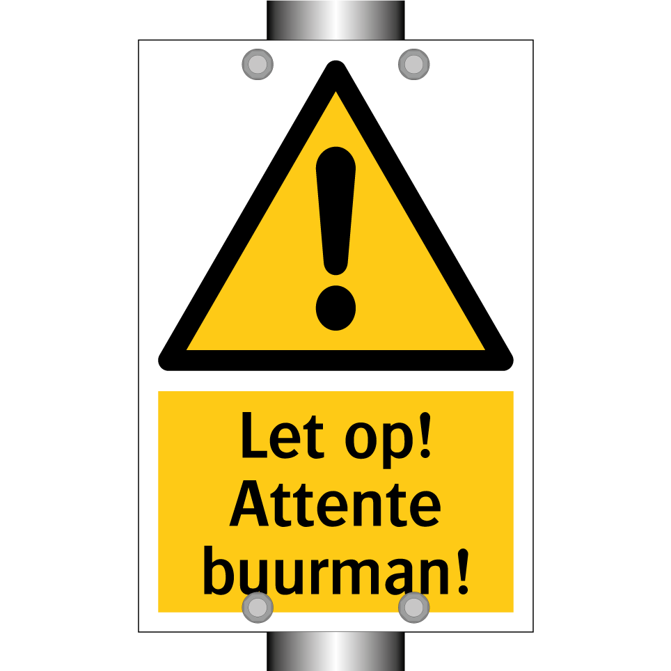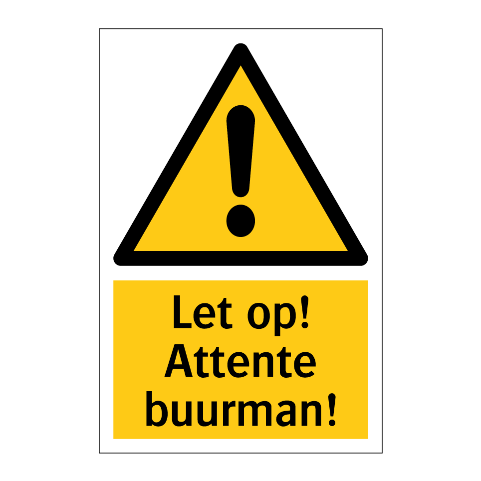 Waarschuwingsbord met de tekst Let op! Attente buurman!
