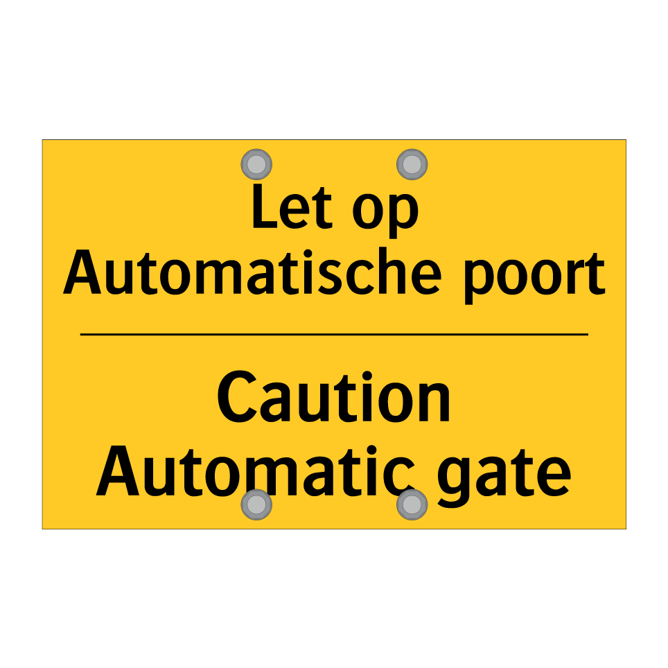 Waarschuwingsbord met de tekst Let op Automatische poort / Caution Automatic gate