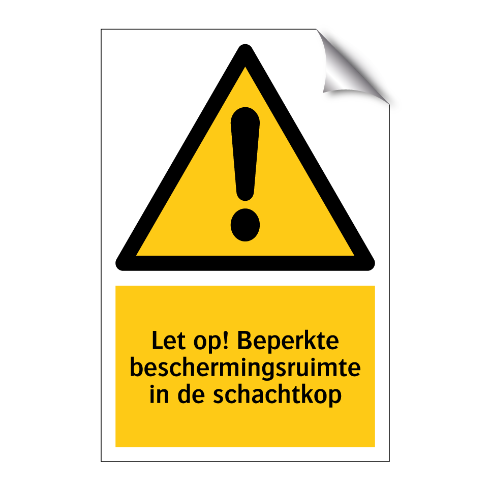 Waarschuwingsbord met de tekst Let op! Beperkte beschermingsruimte in de schachtkop