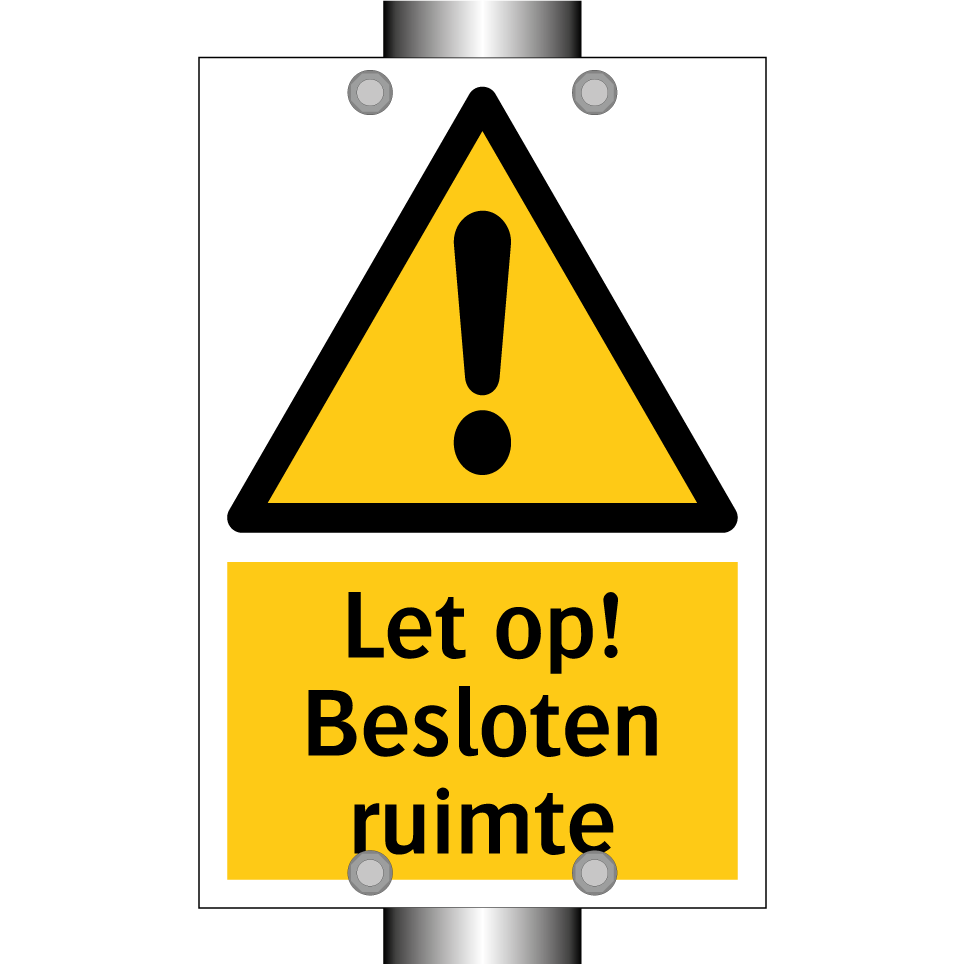 Waarschuwingsbord met de tekst Let op! Besloten ruimte