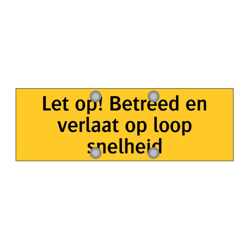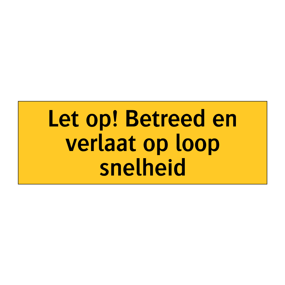 Waarschuwingsbord met de tekst Let op! Betreed en verlaat op loop snelheid