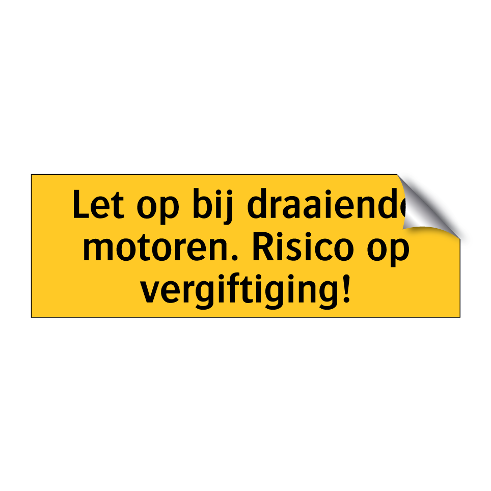 Waarschuwingsbord met de tekst Let op bij draaiende motoren. Risico op vergiftiging!