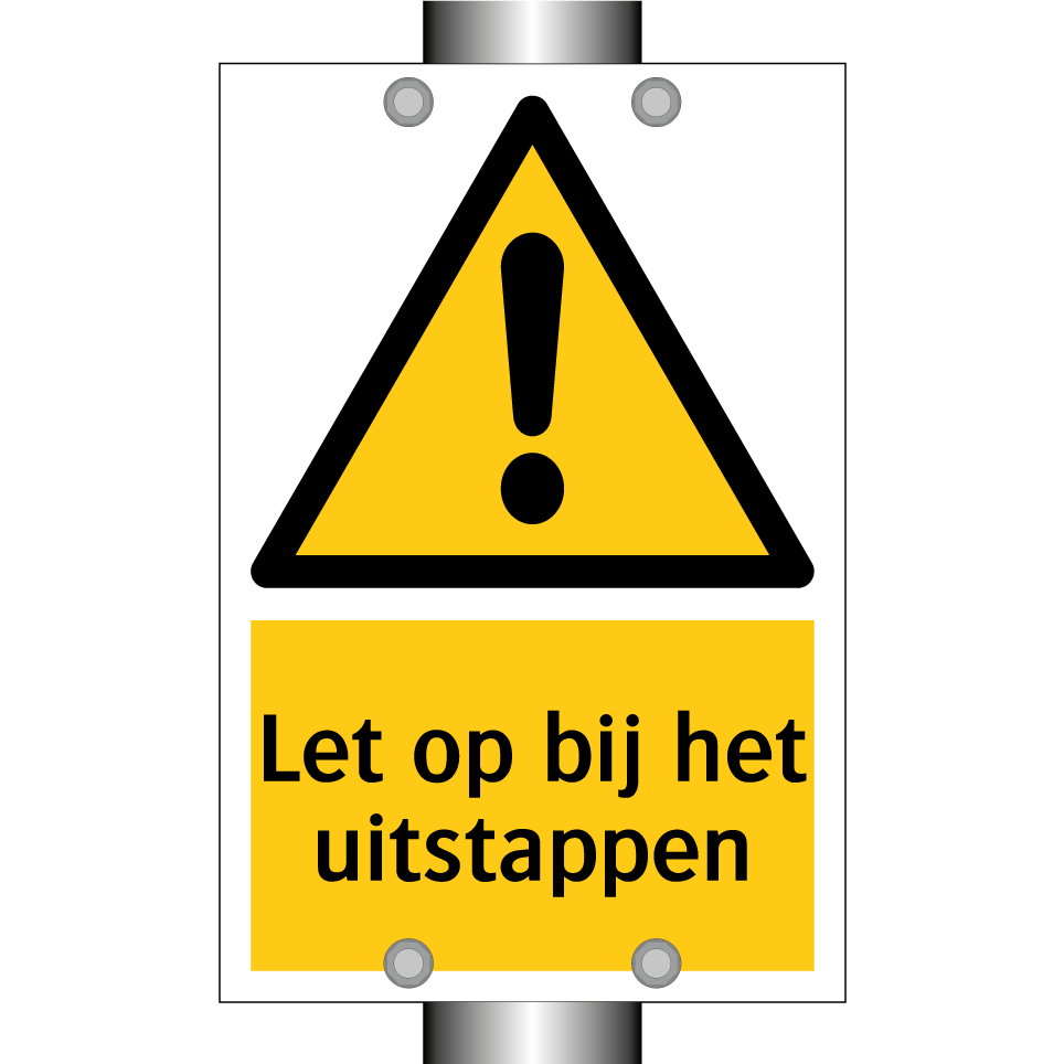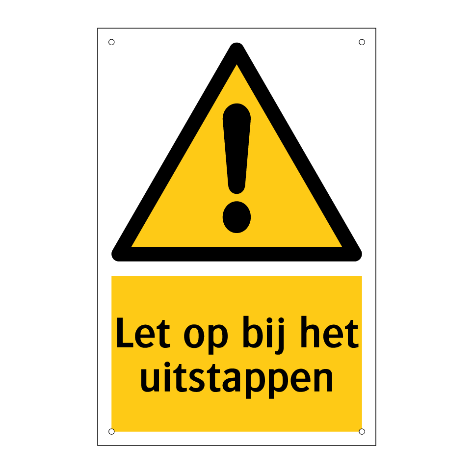 Waarschuwingsbord met de tekst Let op bij het uitstappen