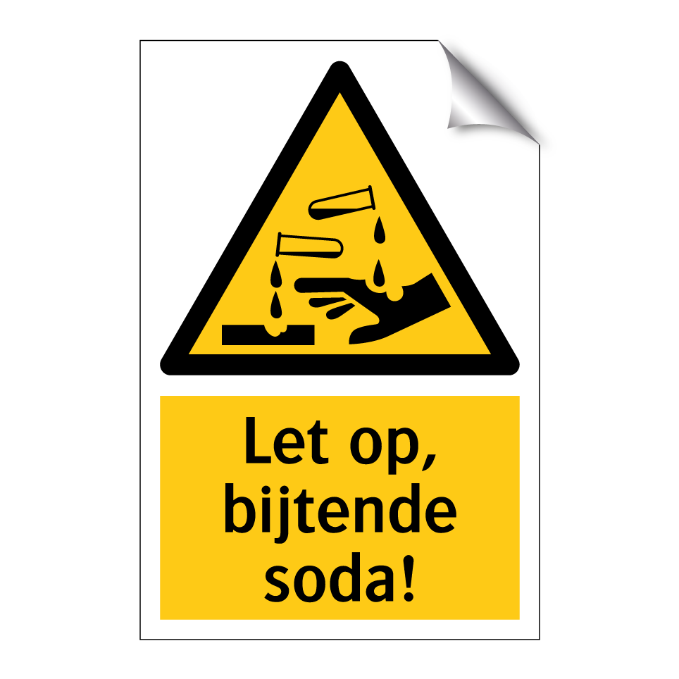 Waarschuwingsbord met de tekst Let op, bijtende soda!