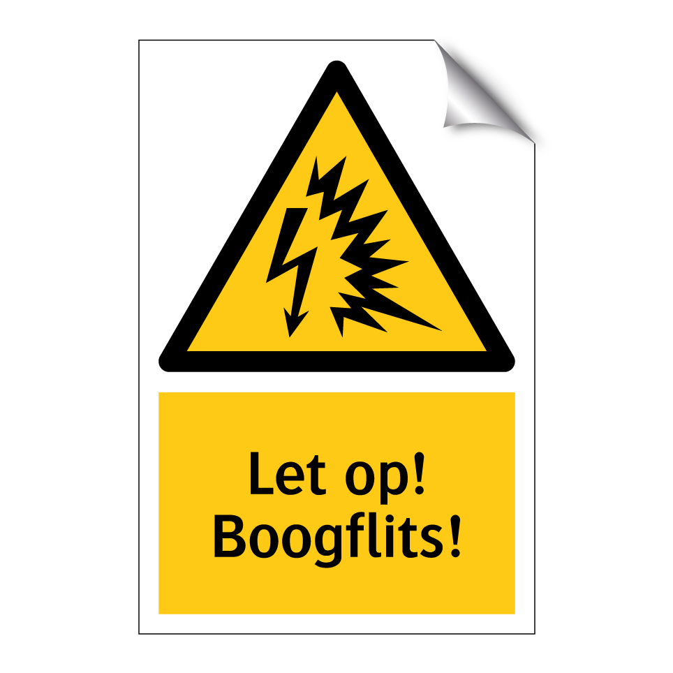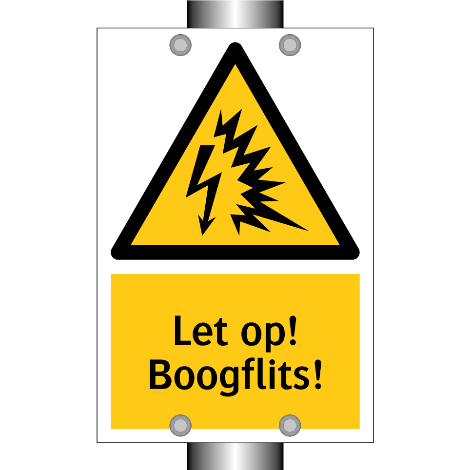 Waarschuwingsbord met de tekst Let op! Boogflits!